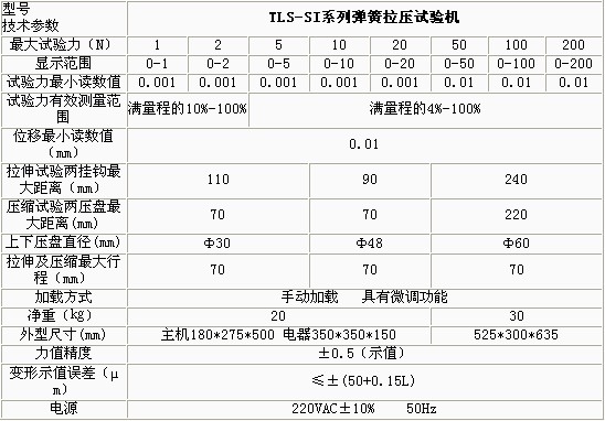 產品概述: TLS-SI系列雙數(shù)顯示拉壓彈簧試驗機采用集成電路、微機技術對位移、試驗力兩參數(shù)進行電子檢測、數(shù)字顯示并對試驗結果進行打印。施加試驗力為手動,還可以對負荷傳感器位移作自動修正。,適用于各種精密拉伸和壓縮螺旋彈簧試驗機及對脆性材料的強度測 功能特點: 數(shù)字顯示位移、負荷,彈簧疲勞試驗機廠家,精確直觀并對試驗結果進行打印 采用ISP技術編程,彈簧試驗儀,對負荷傳感器的變形自動修正 試驗力、位移任意點清零,一鼎彈簧試驗機,可任意設定檢測基準 具有峰值保持、過載保護等功能 技術參數(shù):
