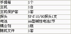 可選附件: 1、TT300/TT100A/TT310/TT320/TT340系列超聲波測(cè)厚儀探頭參數(shù) 2、耦合劑 3、通訊軟件 4、通訊電纜 5、打印機(jī)