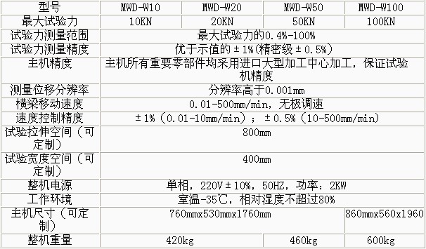 MWD-W系列微機控制電子式人造板試驗機技術參數(shù):
