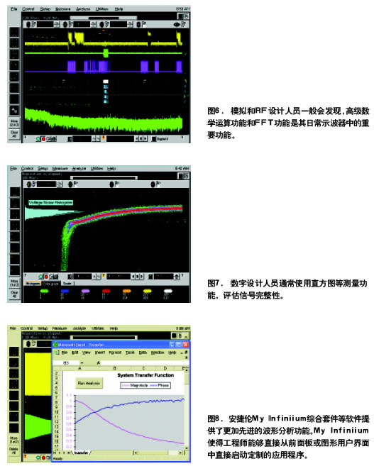 對關(guān)注波形分析的“高需求用戶”示波器制造商正在中檔示波器和高檔示波器中提供更大的靈活性。某些制造商提供的軟件允許定制復(fù)雜的測量直接從示波器用戶界面中執(zhí)行數(shù)學(xué)函數(shù)和后期處理。例如可以使用C++或Visual Basic編寫測量程序然后從示波器圖形用戶界面(GUI)中執(zhí)行程序。用過這一功能用戶不需把數(shù)據(jù)傳送到外部PC上對關(guān)注波形分析的用戶這可以節(jié)約大量的時間。