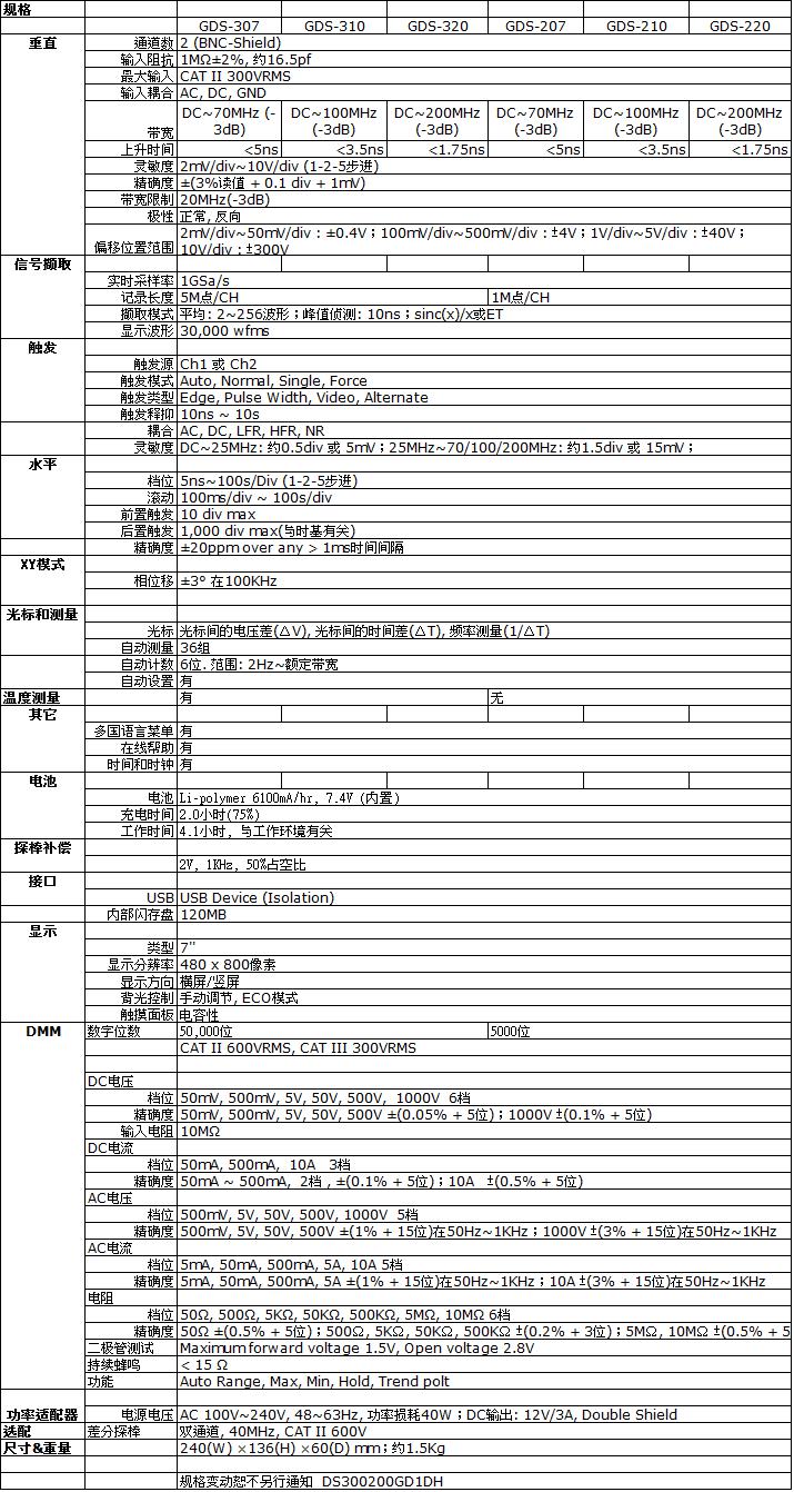 數(shù)字示波器已進(jìn)入一個(gè)全新的時(shí)代,精巧的外型,全頻幕多點(diǎn)觸控操作,豐富的功能使得看似精巧的數(shù)字示波器,卻具備了強(qiáng)大的功能,這足以輕松解決工程師所需要面對(duì)繁復(fù)的量測(cè)問題,這是固緯對(duì)全新時(shí)代魅力示波器的最新定義,也是它為何稱之為儀器界之霹靂嬌娃的重要原因。U盤儲(chǔ)存功能,可垂直或橫向觀測(cè),亦附帶可充電鋰電池,方便外出使用。在各項(xiàng)任務(wù)領(lǐng)域可使用于一般實(shí)驗(yàn)室、研發(fā)服務(wù)單位、大型機(jī)電系統(tǒng)測(cè)試、電源產(chǎn)品量測(cè)、馬達(dá)測(cè)試、太陽能電池檢修以及需要經(jīng)常性出差之維修人員。 GDS-300/GDS-200系列智能示波器具備進(jìn)階型以及標(biāo)準(zhǔn)型兩系列機(jī)種,分別具備70MHz、100MHz以及200MHz三種帶寬選擇,搭載兩通道之模擬信號(hào)輸入端。其中單一通道最大取樣率為1GSa/s,存儲(chǔ)器長(zhǎng)度最長(zhǎng)可達(dá)5M/1Mpts。GDS-300/GDS-200示波器同時(shí)具備50,000位數(shù)/5,000位數(shù)之?dāng)?shù)字萬用表,可同時(shí)進(jìn)行交直流電壓、電流以及溫度之量測(cè)與監(jiān)控(溫度測(cè)量?jī)HGDS-300),亦可進(jìn)行長(zhǎng)時(shí)間趨勢(shì)圖型之繪制,虛擬示波器,讓工程師在量測(cè)基本電路信號(hào)之外,亦能有效監(jiān)控標(biāo)準(zhǔn)電氣參數(shù)。 此產(chǎn)品亦可搭配40MHz雙通道差分測(cè)試探棒,對(duì)于一些要求嚴(yán)苛的電源以及接地環(huán)境可提供等效之隔離通道效果。使用者亦能將示波器當(dāng)作是一方便使用的USB儲(chǔ)存元件,可隨時(shí)儲(chǔ)存波形影像以及點(diǎn)陣資料。另外還可以與智能型手機(jī)連線,將儲(chǔ)存的資料傳輸出去。多樣化的應(yīng)用軟件可讓使用者體會(huì)固緯示波器的貼心設(shè)計(jì),其中進(jìn)階數(shù)字萬用表功能以及GO/NOGO模板之編輯,能幫助使用者進(jìn)行進(jìn)階多樣化的功能量測(cè)。工程計(jì)算機(jī)、衰減值計(jì)算分析,以及電阻值計(jì)算分析軟件可幫助使用者進(jìn)行輔助功能之應(yīng)用,多樣化也深具魅力的多功能性呈現(xiàn)了完整的技術(shù)整合理念。