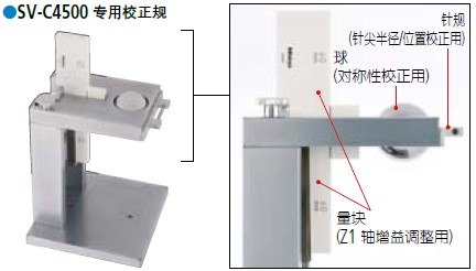 SV-C4500 系列使用專業(yè)校正規(guī)(標配附件),東京精密粗糙度儀官網,通過改進使得上下兩方附帶從動件的上下圓錐測針能簡便易行地進行校正。Z1 軸增益、對稱性、探針半徑等繁瑣的校正工作一次便可完成。