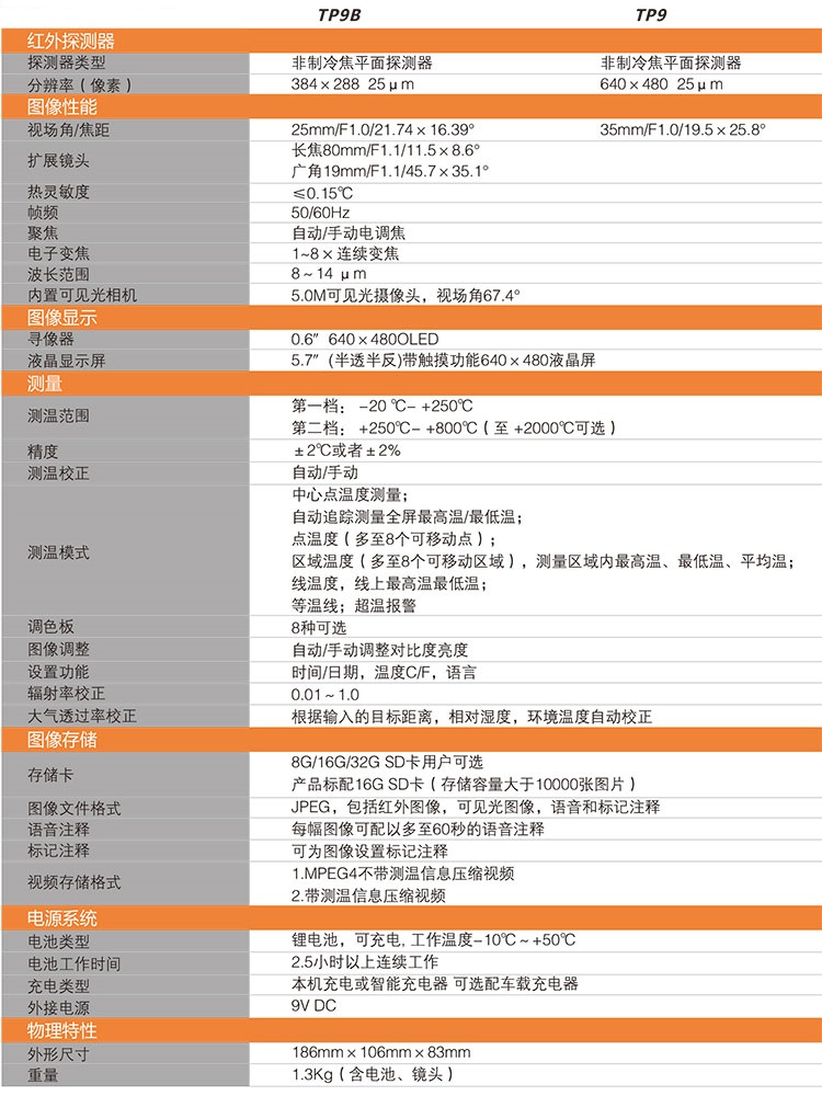 TP9是一款640×480分辨率的智能手持測溫產(chǎn)品。該產(chǎn)品具有觀察場景細節(jié)更加細膩,WIFI視頻傳輸,紅外熱像儀使用,配備高分辨率的 OLED取景器,紅外熱像儀flir,5.7寸的高分辨率彩色液晶觸控屏,具有陽光下可視的特點,便攜紅外熱像儀,鎂鋁合金的金屬外殼鑄件,為用戶提供堅固耐用儀器的同時還帶來了超凡的尊貴感 受。