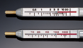 ![]() 每個(gè)PosiPen有兩個(gè)尺度,槍式涂層測(cè)厚儀,密耳(英寸)和微米(公制)