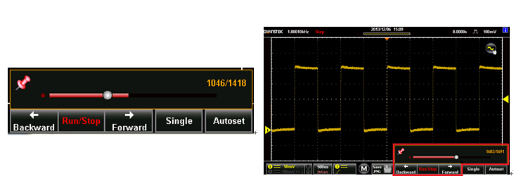 GDS-300/GDS-200系列示波器內(nèi)建30,000筆波形記錄以及回放功能。工程師能夠使用此功能進行長時間的電路監(jiān)控,當30,000筆波形量測完成時,還能重復(fù)播放過去的記錄,當電路中若發(fā)生間歇性的異常波時,便可利用回放功能找到問題發(fā)生之所在,提供使用者一個強大的搜尋以及除錯利器。