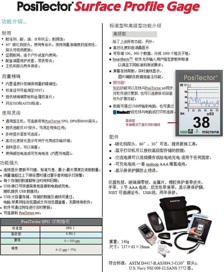 美國(guó) DeFelsko公司新推出的PosiTector SPG表面粗糙度測(cè)量?jī)x,表面粗糙度測(cè)量?jī)x,測(cè)量準(zhǔn)確,hommel粗糙度儀,菜單方便。分為SPG1 數(shù)顯表面粗糙度儀標(biāo)準(zhǔn)型和SPG3 數(shù)顯表面粗糙度儀高級(jí)型。兩種型號(hào)都帶統(tǒng)計(jì)功能,粗糙度儀的應(yīng)用,隨著測(cè)量的進(jìn)行會(huì)顯示統(tǒng)計(jì)值,進(jìn)行滾動(dòng)統(tǒng)計(jì)。此功能為大面積區(qū)域的評(píng)估節(jié)省了時(shí)間,上海粗糙度儀,快速建立通觀的、平均 的粗糙度數(shù)值。
