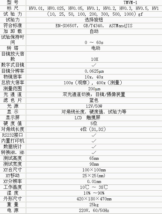 產(chǎn)品概述: • TMVM-1觸摸屏顯微維氏硬度計(jì)硬度計(jì)儀器在機(jī)械上采用精密的設(shè)計(jì),dhv 1000維氏硬度計(jì),在電氣上由CPU控制試驗(yàn)過程,維氏硬度計(jì)多少錢,在光學(xué)上采用高清晰光學(xué)測量系統(tǒng)、光電傳感等新技術(shù)。 • 適用于測量微小、薄形試件、表面滲鍍處理后的零件和對瑪瑙、玻璃、陶瓷等脆性材料的顯微和努氏硬度的測定 以及涂層、表面覆層、層壓金屬、熱處理碳化層和淬火硬化層的深度與硬度梯度的測定。是科研機(jī)構(gòu)、工廠及質(zhì)檢部門進(jìn)行研究和檢測的理想的硬度測試儀器。 功能特點(diǎn): • 操作由面板上的觸摸鍵輸入,維氏硬度計(jì) 時(shí)代,能預(yù)置試驗(yàn)力保荷時(shí)間、選擇維氏或努氏試驗(yàn)方法、調(diào)節(jié)測量光源的強(qiáng)弱等功能。 • 在LCD液屏上顯示測量壓痕長度、硬度值、測量次數(shù)、轉(zhuǎn)換值等,時(shí)代維氏硬度計(jì),并通過打印機(jī)輸出,維氏硬度計(jì)hv0.1,還能通過RS232接口與計(jì)算機(jī)連網(wǎng)。 • 硬度計(jì)還可根據(jù)用戶特殊需求配置CCD裝置、視屏裝置和攝像裝置 技術(shù)參數(shù):