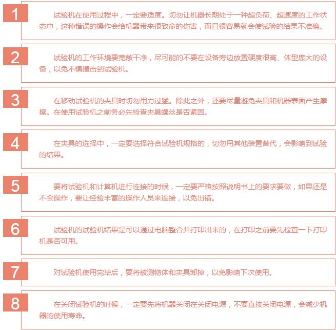 所有的機械設備的使用都要遵循它自身的工作原理還要根據(jù)實際的使用情況定期進行保養(yǎng)維護才能確保機器設備的正常使用。只有遵循以上兩點才可以延長機器的使用壽命讓機器更好的為人們服務。試驗機也不例外下面就跟大家分享一下試驗機在工作中需要注意的細節(jié):