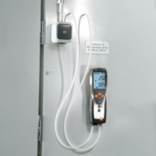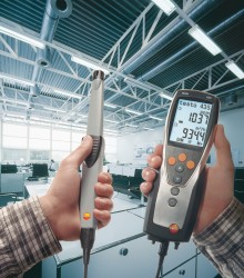 用于管道測量的流速傳感器都帶有伸縮桿,,便于在大型空氣管道中進(jìn)行操作。如果需要,還可以使用測量流速的探頭來測量溫度和濕度。可以根據(jù)應(yīng)用需求選擇熱敏探頭、葉輪探頭或皮托管來測量管道中的流速。 測量室內(nèi)空氣質(zhì)量(二氧化碳)![]() 高濃度的二氧化碳會導(dǎo)致室內(nèi)空氣質(zhì)量變差,從而使人體感覺疲倦,無法集中精神,甚至生病。因此,為了保證良好的室內(nèi)空氣質(zhì)量,二氧化碳濃度一般不應(yīng)超過1 000 ppm。參考范圍為700到1500 ppm。 IAQ探頭(訂貨號0632 1535)尤為適合監(jiān)控室內(nèi)空氣質(zhì)量。此探頭可以同時記錄二氧化碳濃度、溫度和相對濕度。 在通風(fēng)管道內(nèi)使用皮托管進(jìn)行測量為了確保通風(fēng)和空調(diào)系統(tǒng)的正常功能,對通風(fēng)管道內(nèi)的空氣流速進(jìn)行檢測是非常重要的。 testo 435-3的內(nèi)部壓差傳感器用來測量高流速或高污染的氣流,皮托管測量范圍從0到64米/秒的空氣流速。testo 435-3可以同時顯示壓力、流速和體積流量。 在儀器背后的磁貼可以實現(xiàn)免提操作。 過濾器上壓差測量![]() 空調(diào)系統(tǒng)配有過濾器,可以防止室外空氣中的灰塵進(jìn)入室內(nèi)。應(yīng)定期檢查這些過濾器,以確保它們運(yùn)行良好。為此,,需要測量過濾器前后的壓力差。如果壓差過大,說明過濾器被污染,需要更換。 testo 435-3內(nèi)置壓差傳感器,測量范圍0到25 hPa。在壓差測量過程中會進(jìn)行溫度補(bǔ)償,以得到精確讀數(shù)。在儀器背后的磁貼可以實現(xiàn)免提操作。 熱輻射的測量![]() 多功能測量儀testo 435能夠幫助您可靠地測量熱舒適度。連接一個熱輻射黑球探頭(訂貨號0602 0743),測量輻射熱量(也就是有效或感知溫度)。熱輻射黑球探頭測量的有效溫度與人體感知溫度的差值最好不超過± 0.41 K。 室內(nèi)溫度(空氣溫度和有效溫度)的測量要采取在同一個地方,相同的條件,如室內(nèi)空氣流速的一致的情況下進(jìn)行。 測量空氣和表面溫度為了讓人體感覺舒適,達(dá)到最佳狀態(tài),房間內(nèi)必須調(diào)節(jié)空調(diào)運(yùn)行工況。除了建筑結(jié)構(gòu)因素和個體感覺,以下因素也會在很大程度上影響室內(nèi)空氣的舒適度:室內(nèi)空氣溫度以及墻壁、窗戶、底板和天花板的表面溫度。 testo 435提供滿足不同應(yīng)用的熱電偶探頭。表面探頭(訂貨號0602 0393)和空氣濕度探頭(訂貨號0636 1712)很適合分析結(jié)露問題和霉變的情況。 出風(fēng)口風(fēng)速測量![]() 為了確保系統(tǒng)的高效使用,每個管道的進(jìn)出口體積流量都應(yīng)符合要求,,這是一個基本的前提條件。 在出風(fēng)口處,,適合采用直徑100mm的葉輪風(fēng)速探頭來測量體積流量(訂貨號0635 9435),因為它們可以對較大面積的流速進(jìn)行綜合測量,從而排除通風(fēng)格柵所產(chǎn)生的干擾(回路方法)。 在空氣格柵和提升閥的抽風(fēng)口或出風(fēng)口進(jìn)行測量時,適合采用我們的風(fēng)量罩套裝(訂貨號0563 4170)以及直徑100mm葉輪風(fēng)速探頭(訂貨號0635 9435)。通過風(fēng)量罩來記錄整體體積流量值,不需要根據(jù)流速和面積進(jìn)行計算。這種流量測量方法簡單、可靠。 一氧化碳測量![]() 一氧化碳(CO)是一種無味、無色、無刺激性的氣體,但是有毒。它是在熱源和燃機(jī)內(nèi)的煤、木頭、油、天然氣等含碳物質(zhì)燃燒不充分情況下產(chǎn)生的。一氧化碳濃度增加速度很快,尤其是在沒有足夠氧氣的情況下,并可能對健康產(chǎn)生不良影響。 即使環(huán)境空氣中含有微量的一氧化碳,環(huán)境一氧化碳探頭(訂貨號0632 1235)和testo 435-1也能夠檢測到。