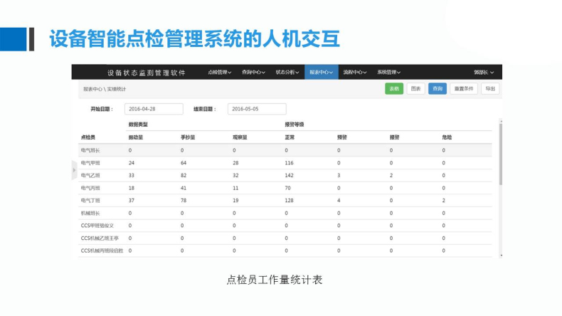 計劃點檢、臨時點檢、違規(guī)解釋、違規(guī)統(tǒng)計、生成計劃、狀態(tài)統(tǒng)計、任務交接